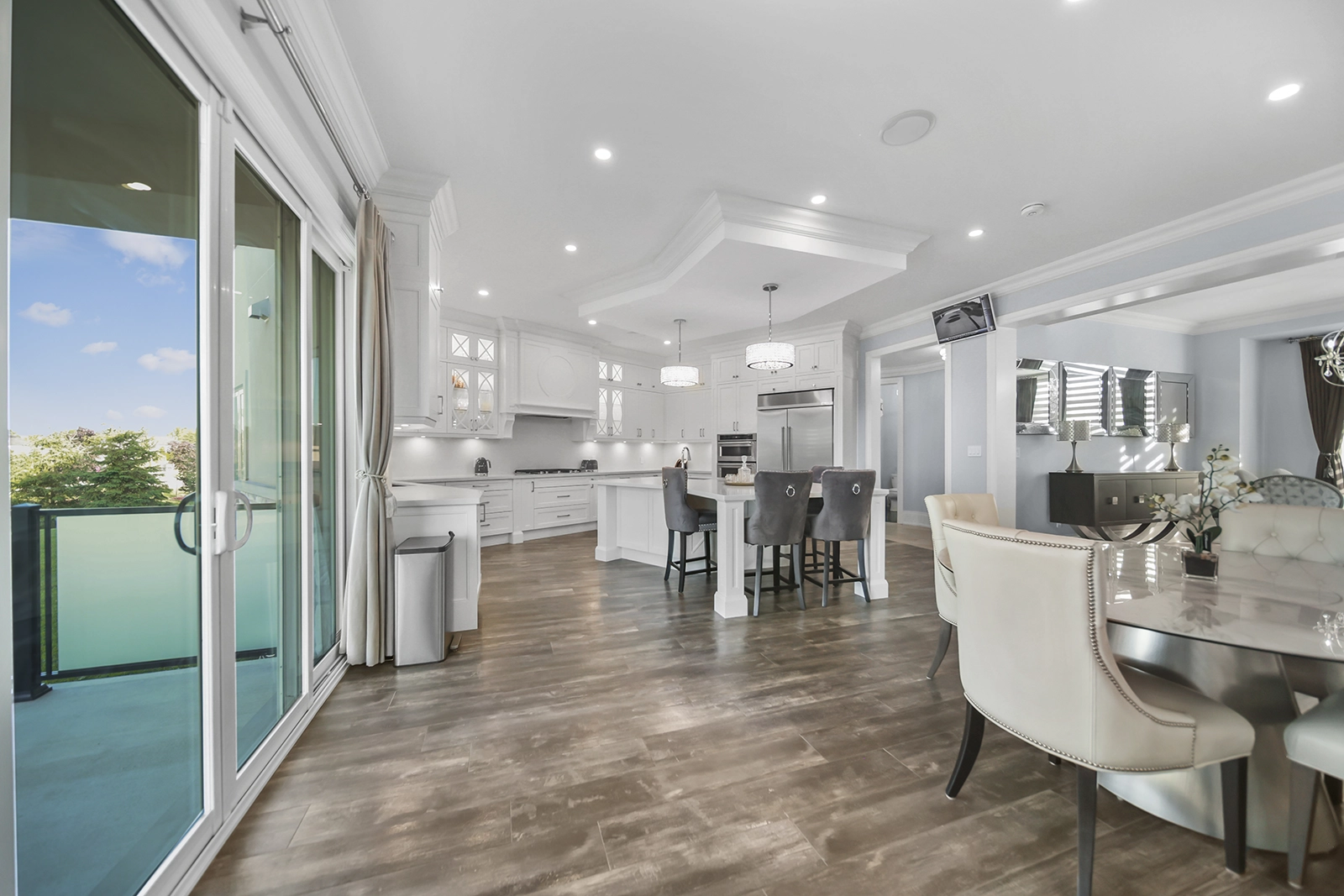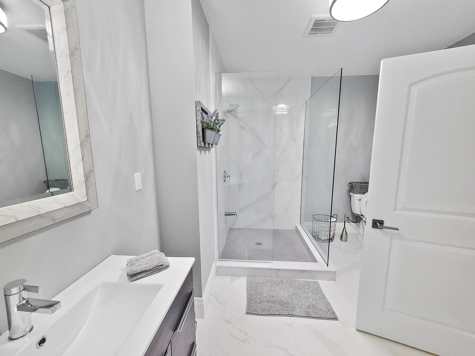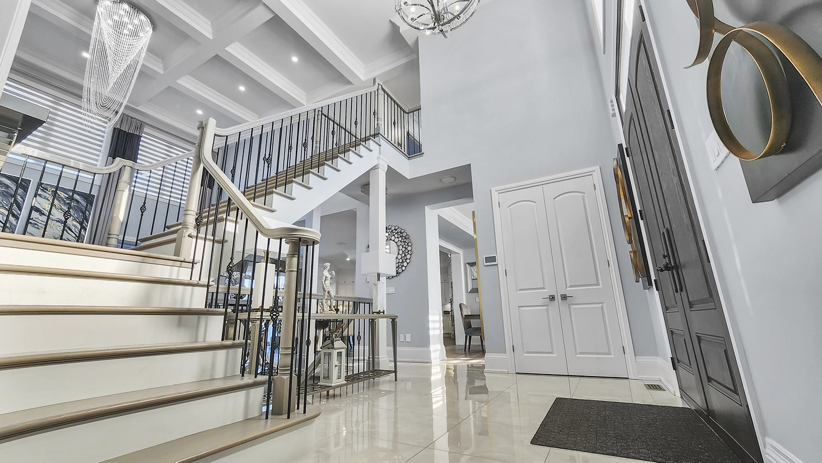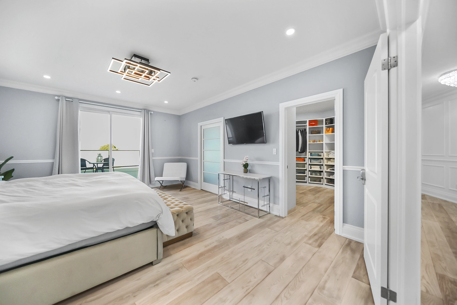 - Master with private balcony in frosted glass, walk-in closet, pristine 5-piece ensuite with marble jetted shower and freestanding spa tub.