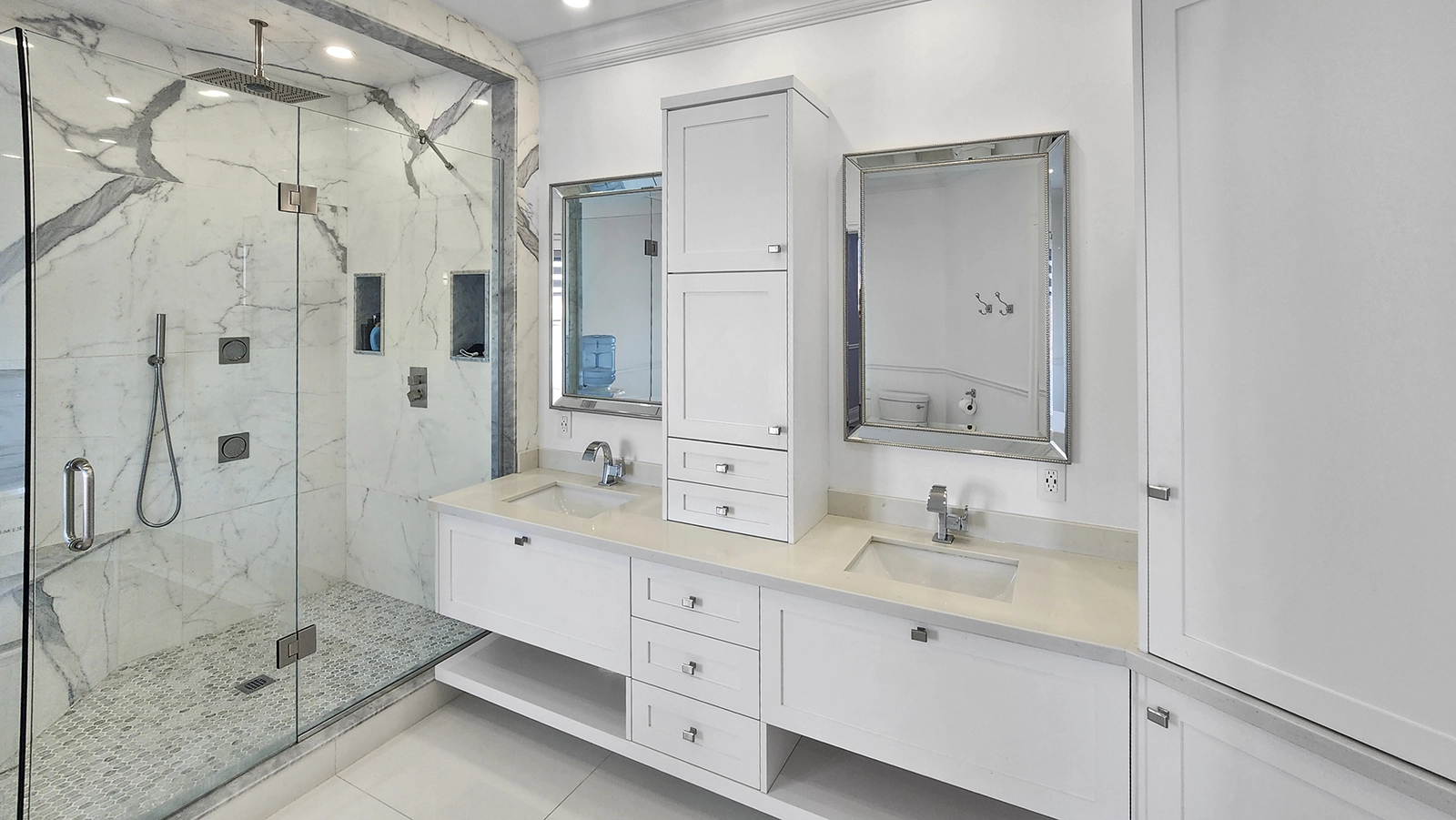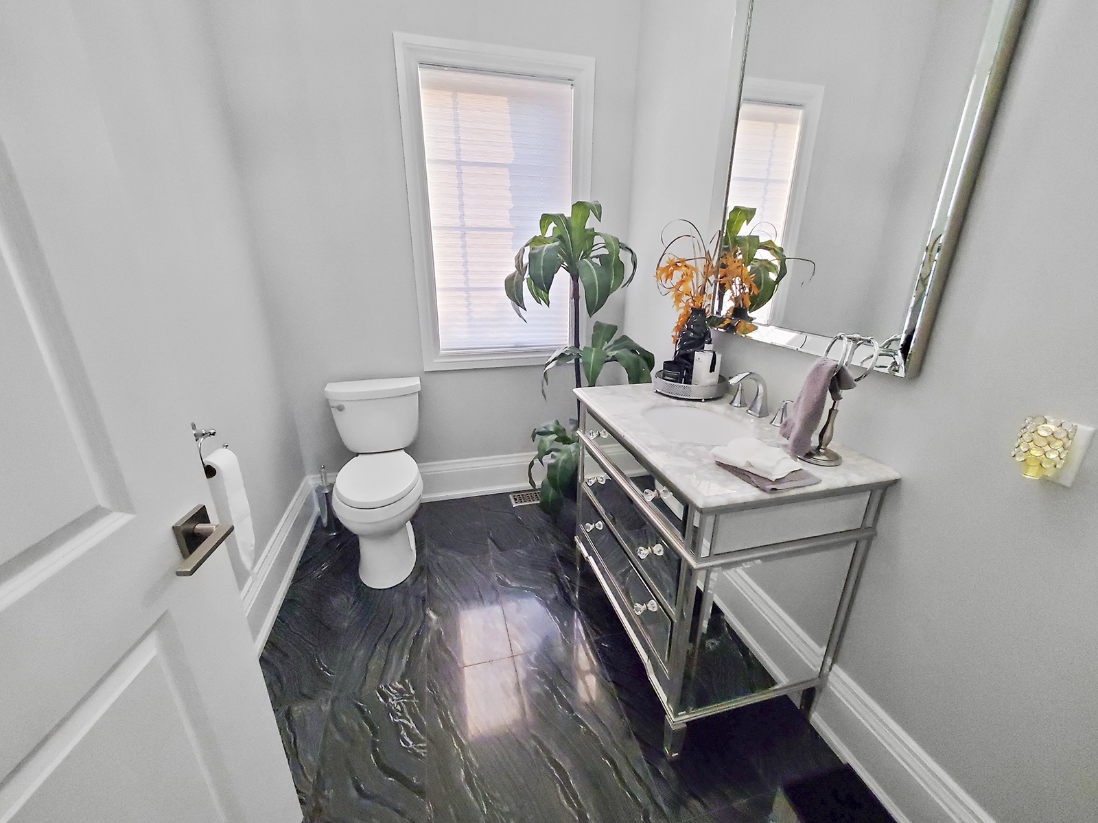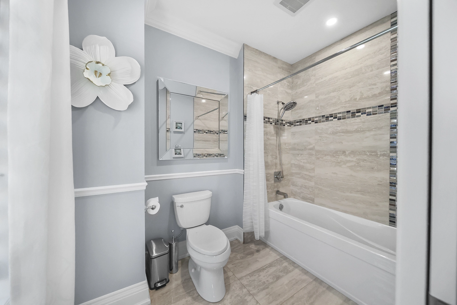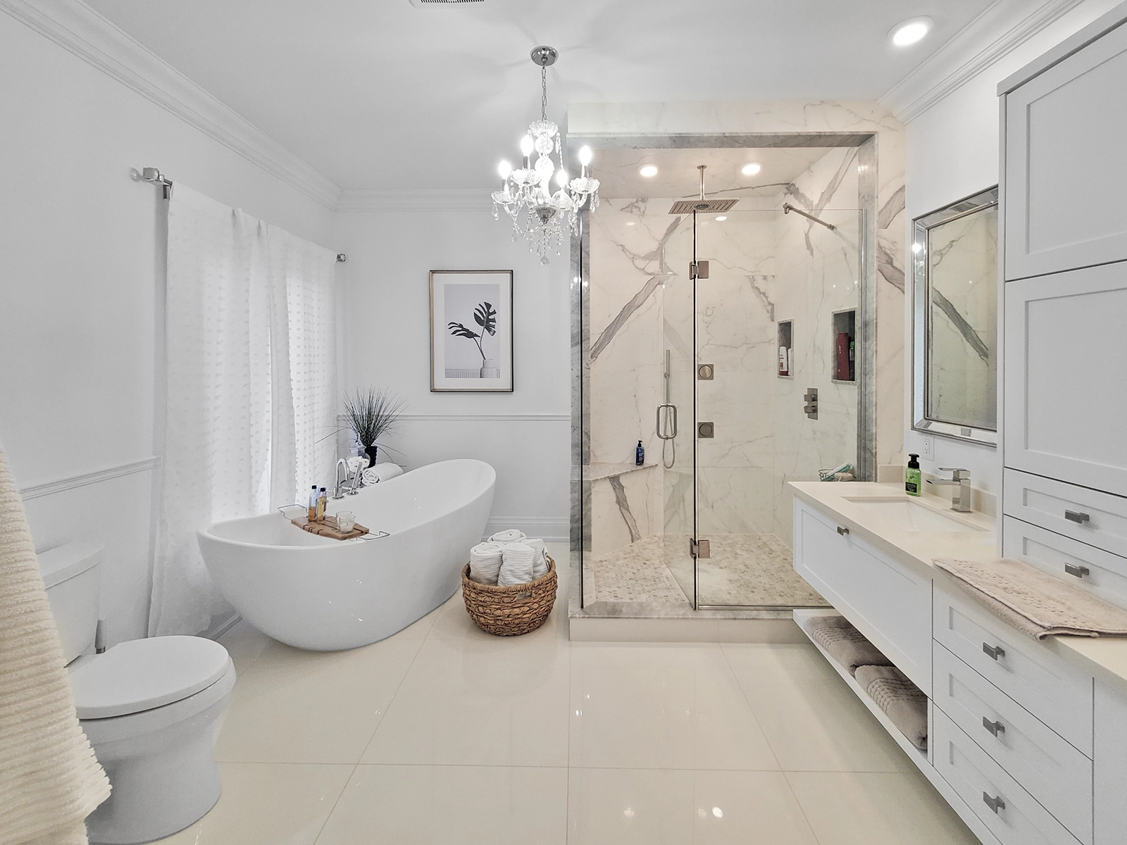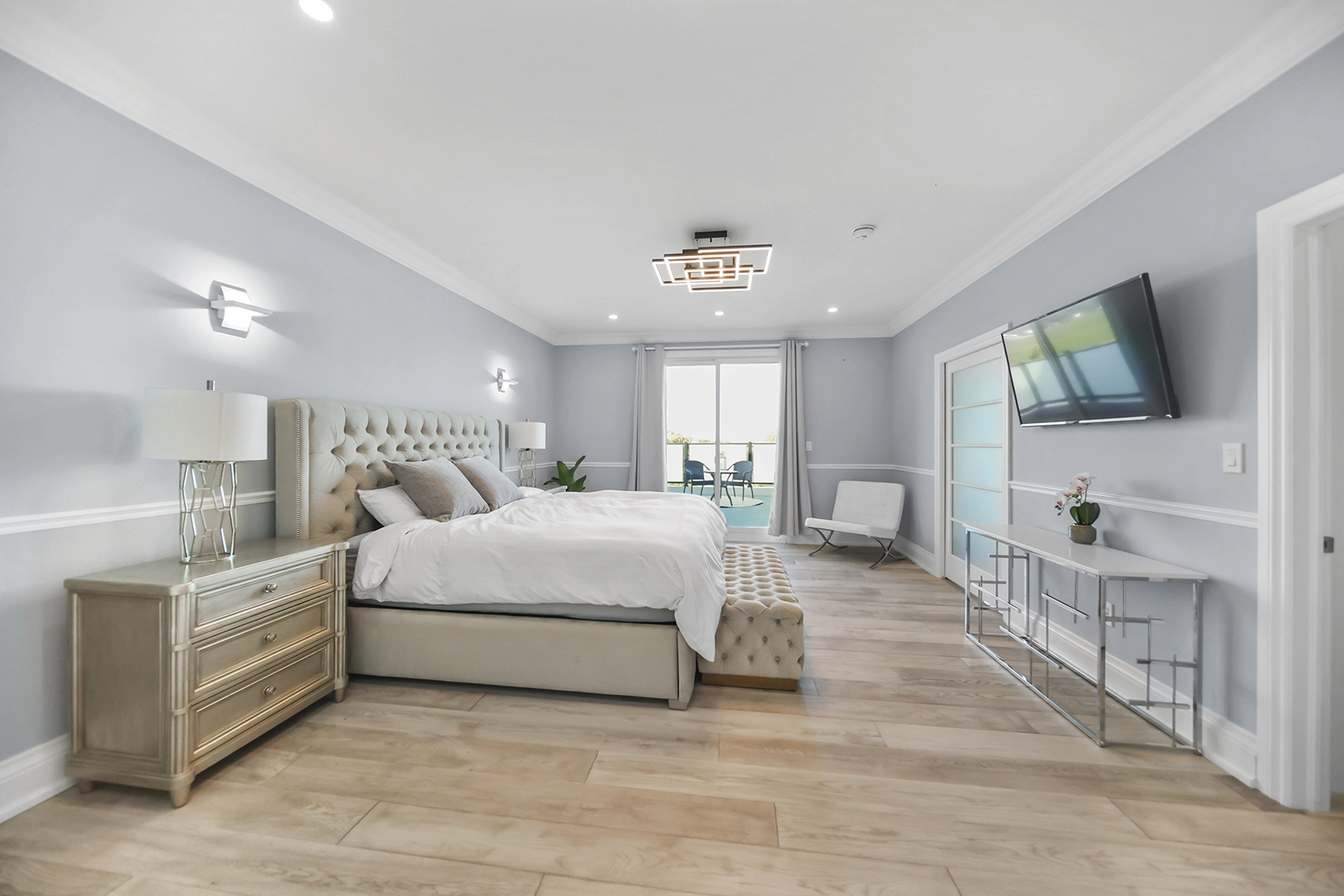 - Master with private balcony in frosted glass, walk-in closet, pristine 5-piece ensuite with marble jetted shower and freestanding spa tub.