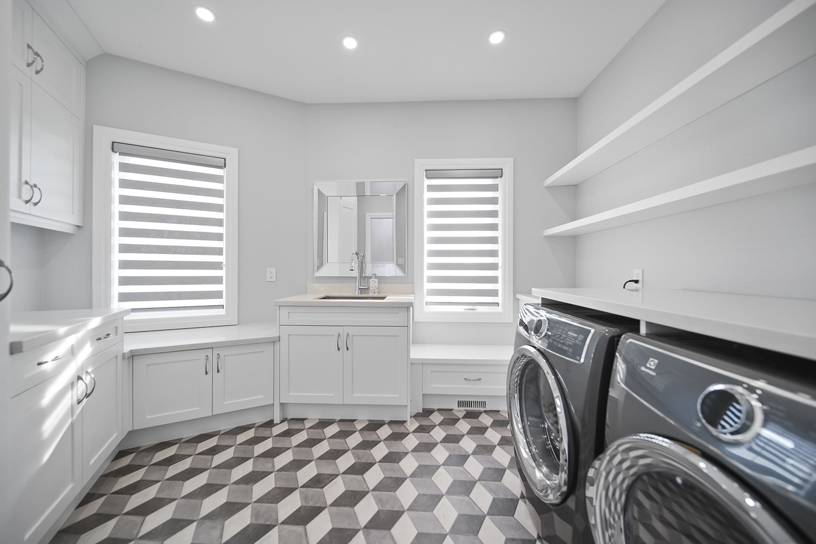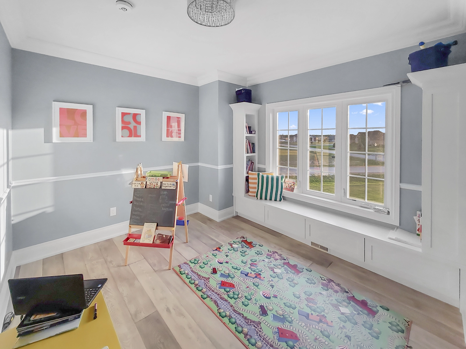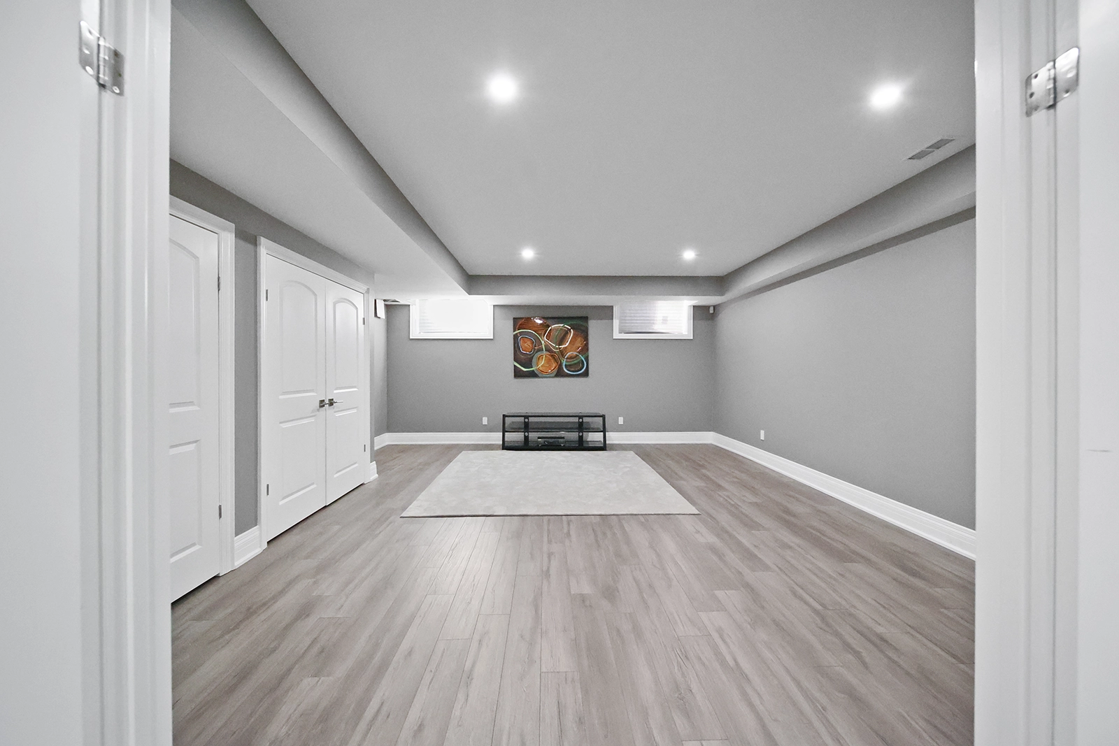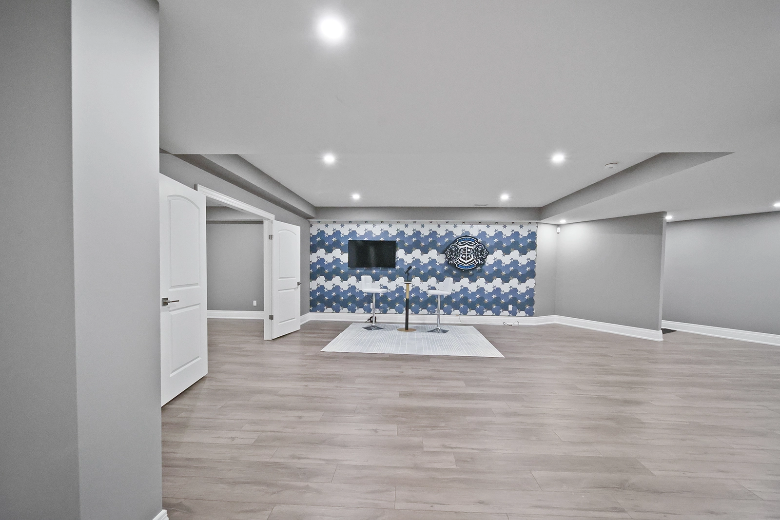 - Finished lower level basement with gym room, podcast recording studio, mud room and rec room.