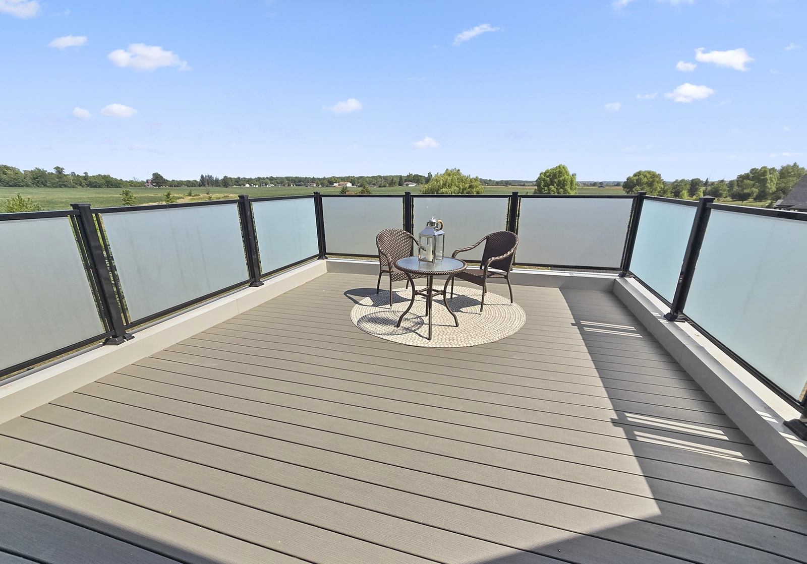 - Rear patio in frosted glass, front porch and rear porch with firepit, BBQ and lounge areas.