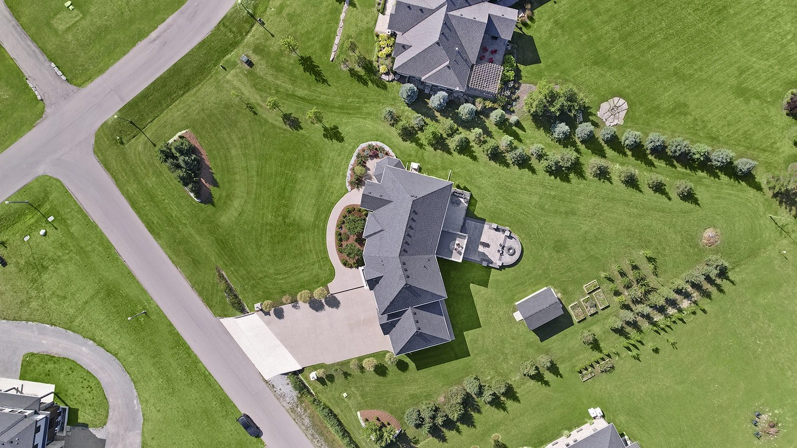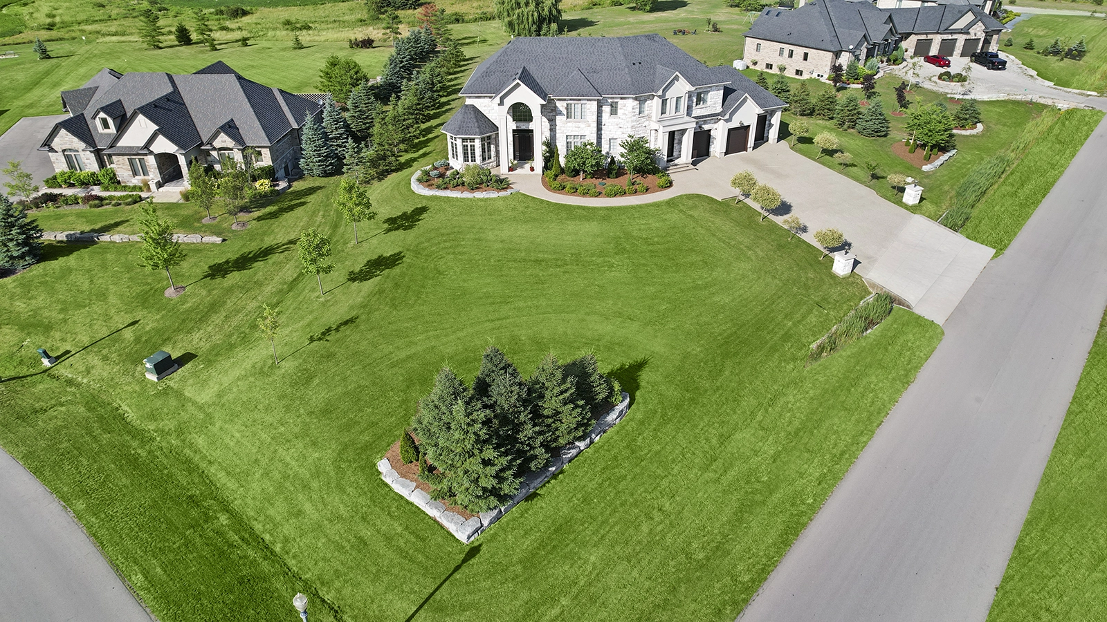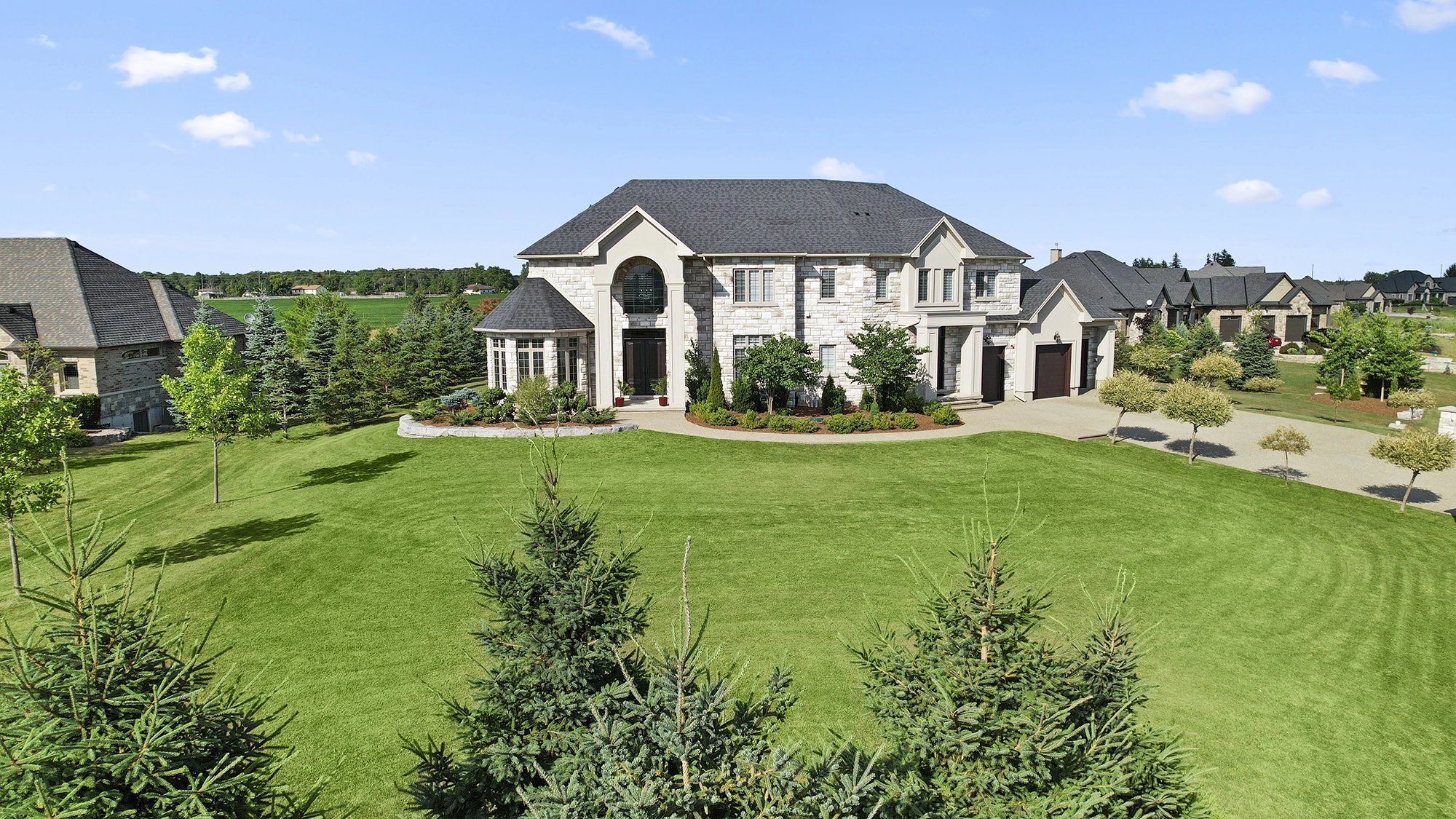 - Premium 1.2-Acre corner lot backing onto greenspace and creek with 18 car driveway.
