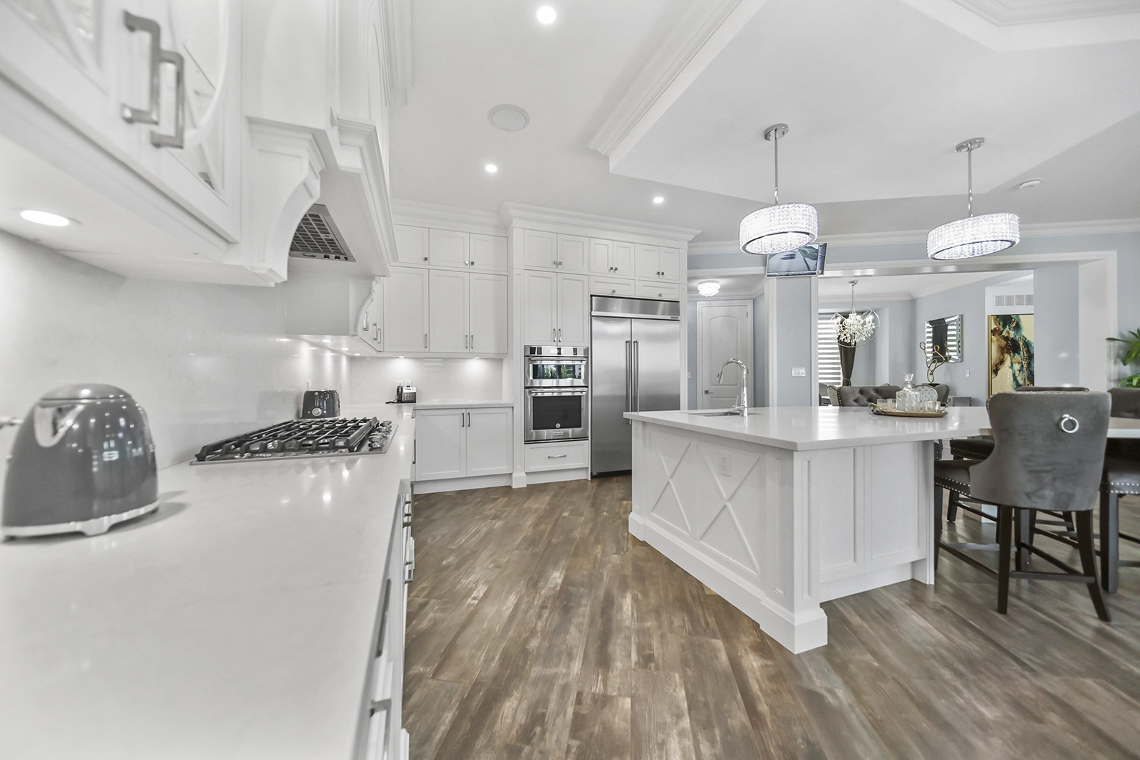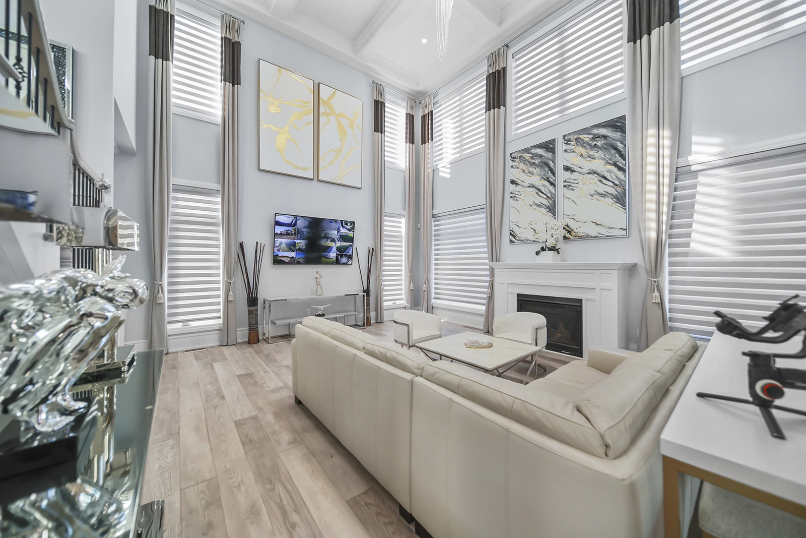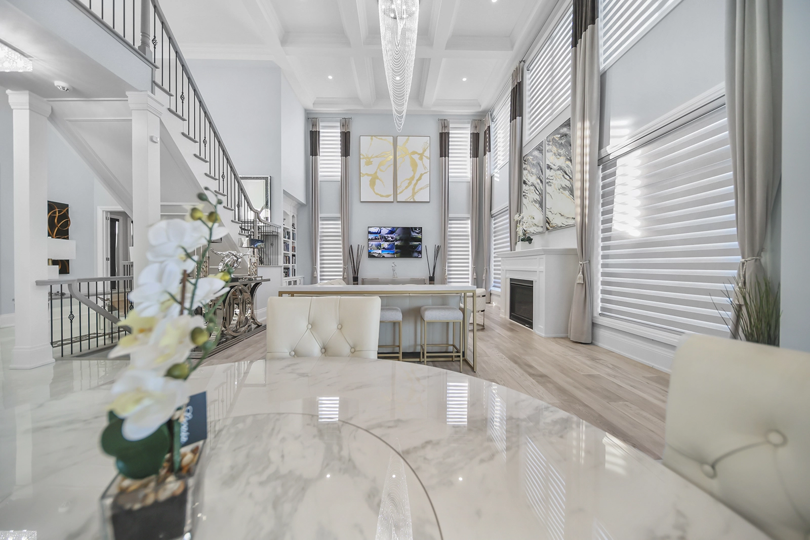 - Over 5000-5500 Sq.Ft. of dream living space. Stately architectural design and high-end custom finishes throughout, including engineered oak, marble, porcelain, stone, granite, and quartz.